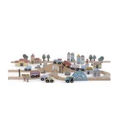 Je kind zal met de Little Dutch Little Railway Collection spoorbaan XXL starterkit heel veel verschillende avonturen beleven. De houten set bestaat uit 98 delen, waaronder rails in verschillende vormen, een gekleurd treintje met wagonnetjes, stadse figuurtjes en natuurlijke elementen. Het leuke van deze starterkit is dat je hem kunt uitbreiden met aanvullende speelsets en zelfs spoorbanen van andere merken.
