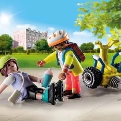 Een geweldige speelervaring voor kinderen vanaf 4 jaar. De speelgoedset bevat twee Playmobil-figuren, een segway, een rugzak, rolschaatsen, een horloge en andere accessoires voor fantasierijke rollenspellen. Met de verschillende verbandlabels kan de gewonde figuur naar wens worden behandeld. De skates van de vrouwelijke figuur zijn afneembaar.