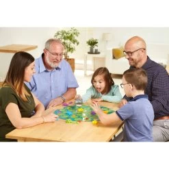 Spring de vijver over…Maar kijk uit voor de vis! Leid je kikkers over de vijver en voorkom dat andere spelers hetzelfde doen. De eerste kikkerfamilie die de andere kant van de vijver bereikt, wint het spel. Maar pas op, de vis kan je kikkers terugjagen naar hun start-oever! Flexibel denken, een goede planning en je tegenstanders dwarsbomen maken dit een spannend spel voor twee tot zes spelers.