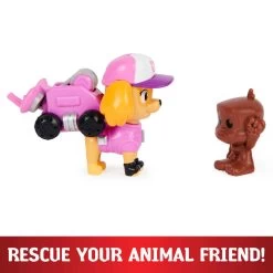 - In de speelset vind je een Skye speelfiguur, een speelfiguur van een aapje, een reddingsaccessoire, een clip-on drone en een commandopod-container.